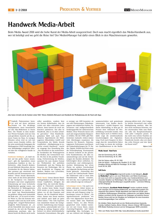 Beim Media Award 2018 wird die hohe Kunst der Media-Arbeit ausgezeichnet. Doch was macht eigentlich das Media-Handwerk aus, wer ist beteiligt und wo geht die Reise hin? Der MedienManager hat dafür einen Blick in den Maschinenraum geworfen.
