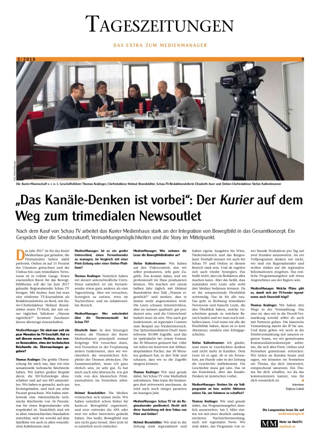 Nach dem Kauf von SchauTV arbeitet das Kurier Medienhaus stark an der Integration von Bewegtbild in das Gesamtkonzept. Ein Gespräch über die Senderzukunft, Vermarktungsmöglichkeiten und die Story im Mittelpunkt.